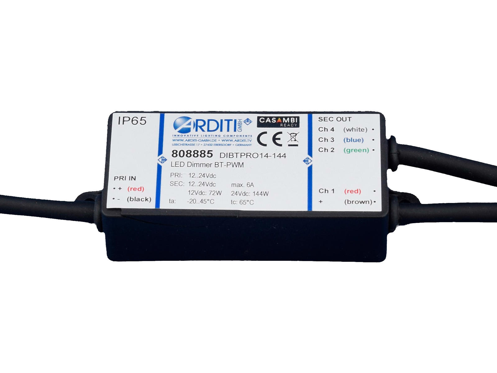 Det maksimalt kombinerede output er 6A, hvilket frit kan deles mellem de 4 kanaler. CBU-PWM4 er beskyttet mod overspænding og kortslutning. Enheden styres trådløst via Casambi app'en fra en smartphone eller tablet.