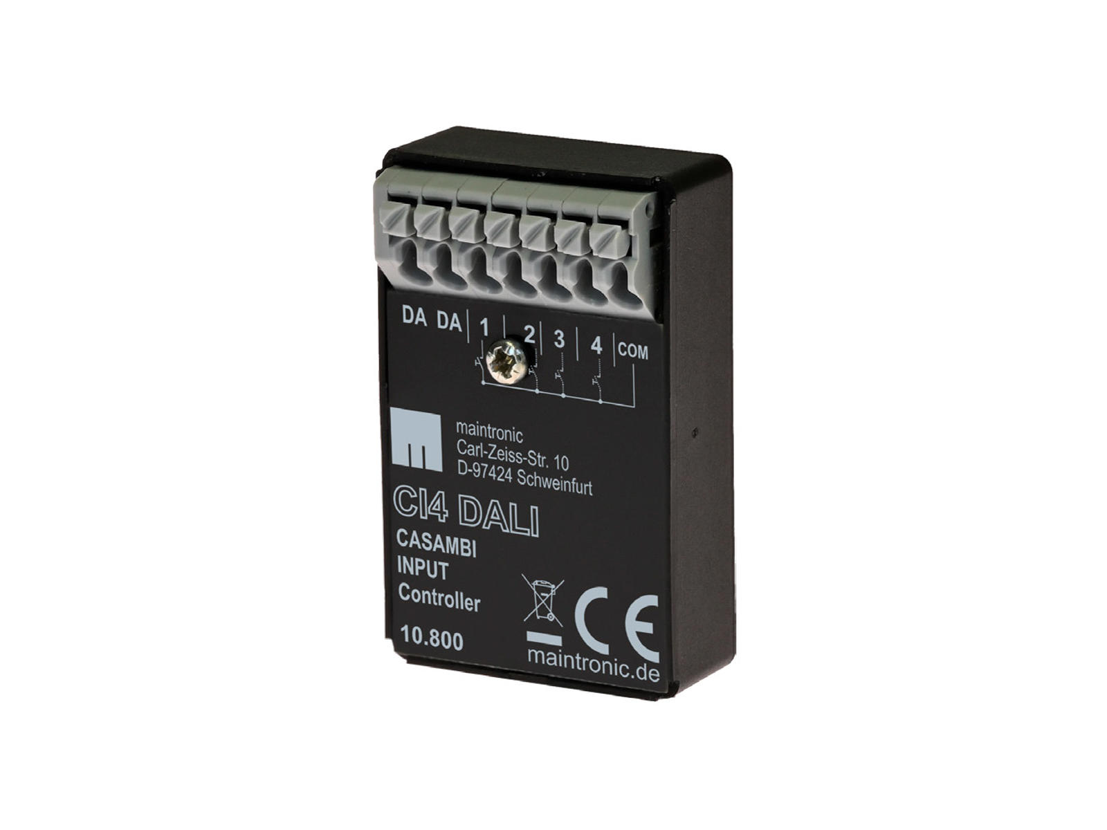 CI4/DALI er en DALI trykknapkobling samt en trådløs Casambi trykknap. Inputmodulet har 4 potentialfrie indgange, der enten kan tilsluttes til et DALI-kredsløb eller til et Casambi netværk, alt efter behov. Det er også muligt at betjene DALI udstyr trådløst via Casambi app’en.