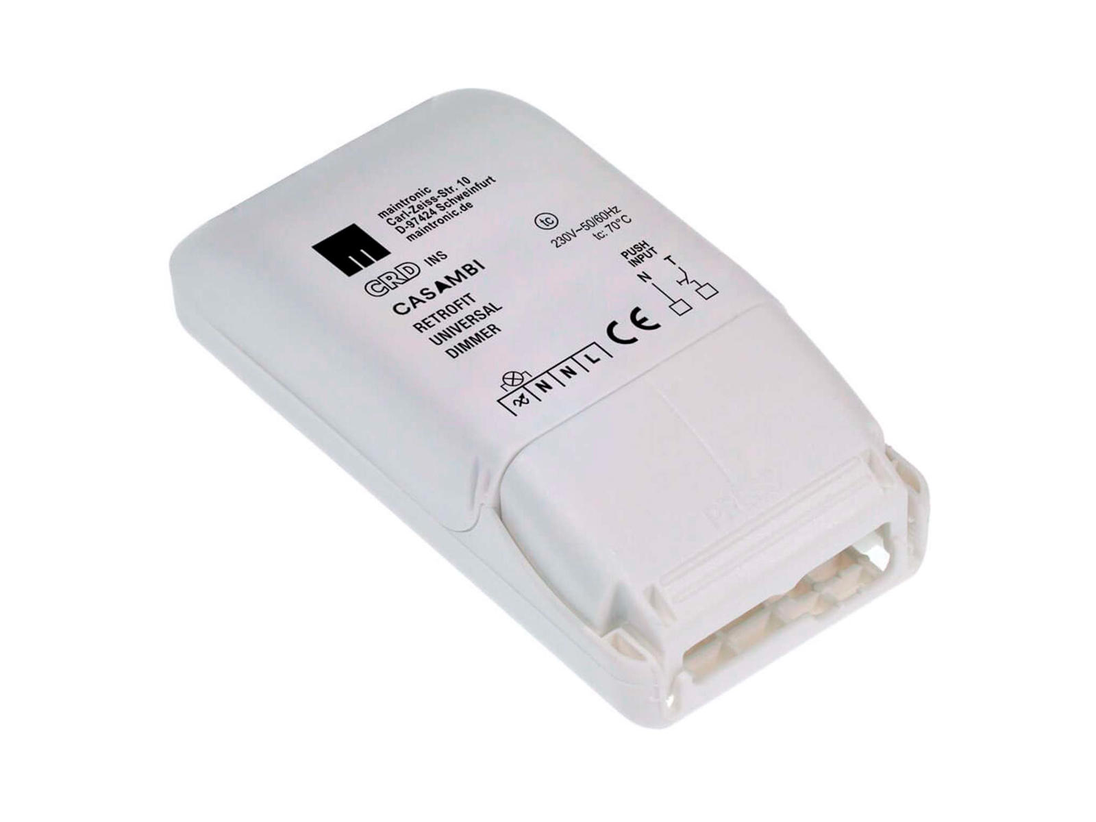 Casambi CRD400 INS er en forkants- og bagkantsfasedæmper med automatisk belastningsdetektion for en enkelt dæmpet fase med en max. belastning på 380VA.
