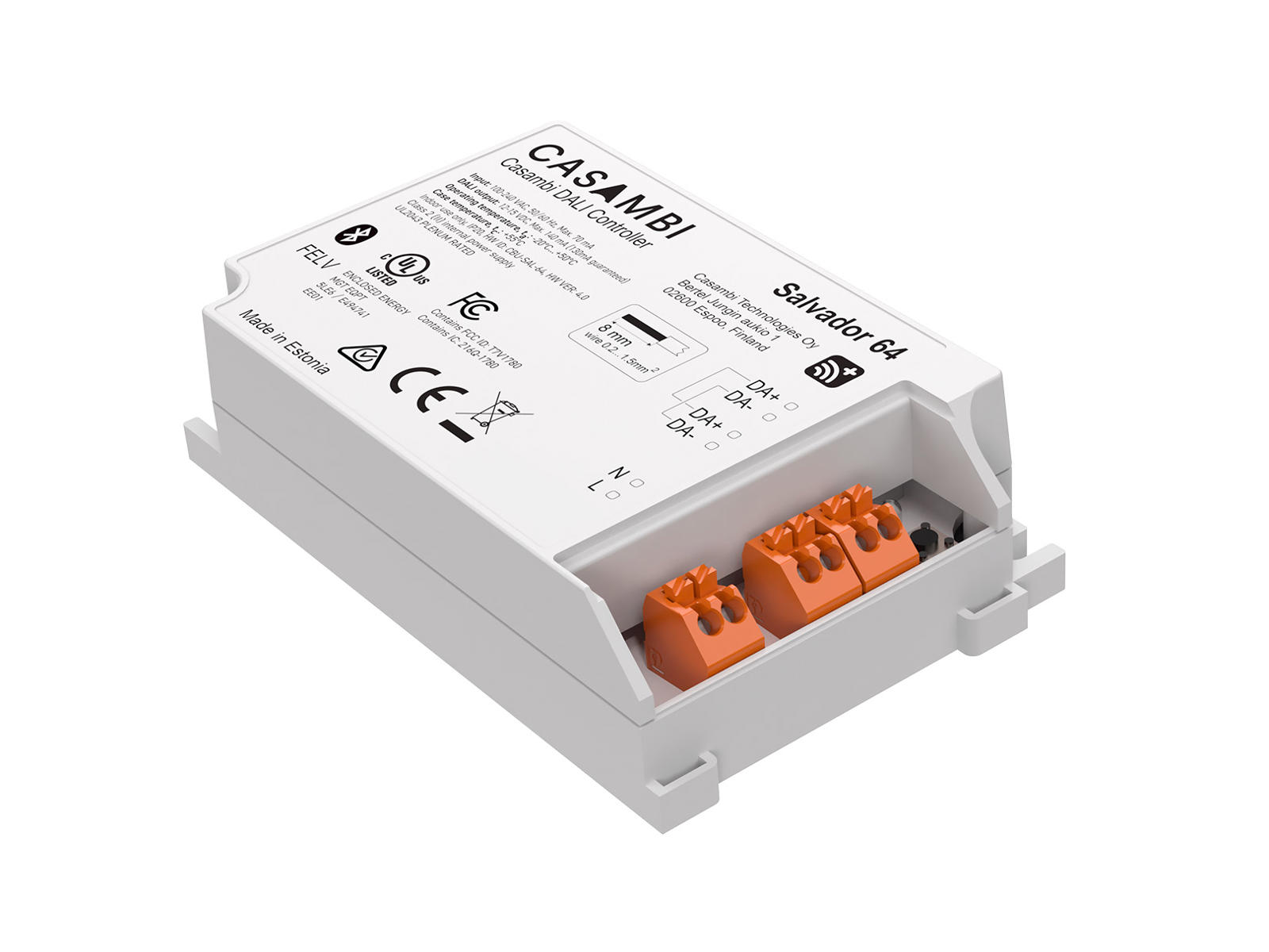 Casambi Salvador 2064 DALI controller gør det muligt at adressere, programmere og styre kablede DALI drivere individuelt via Casambi app’en. Dette muliggør hybride netværk, som består af både Casambi enheder og DALI enheder. Alle DALI drivere, der er tilsluttet en Salvador controller, kan nemt programmeres og styres fra Casambi app’en på samme måde som enhver anden Casambi enhed. Dette eliminerer behovet for en specifik DALI controller og kompleks DALI programmeringssoftware.