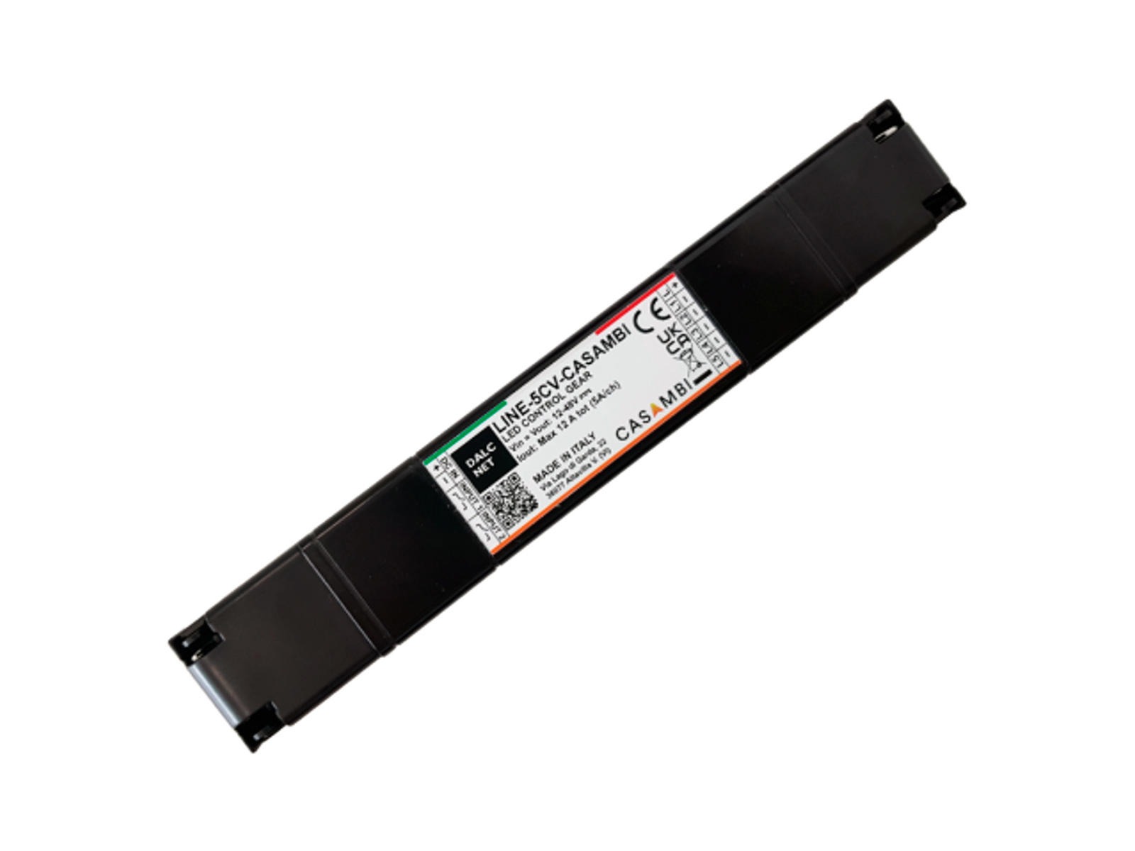 Casambi LINE 5CV er en 5 kanals LED dæmper til styring af LED bånd og LED moduler samt hvid, monokromatisk farve, dynamisk hvid, RGB, RGB+W, RGB+WW og RGB+ TW ved constant voltage.