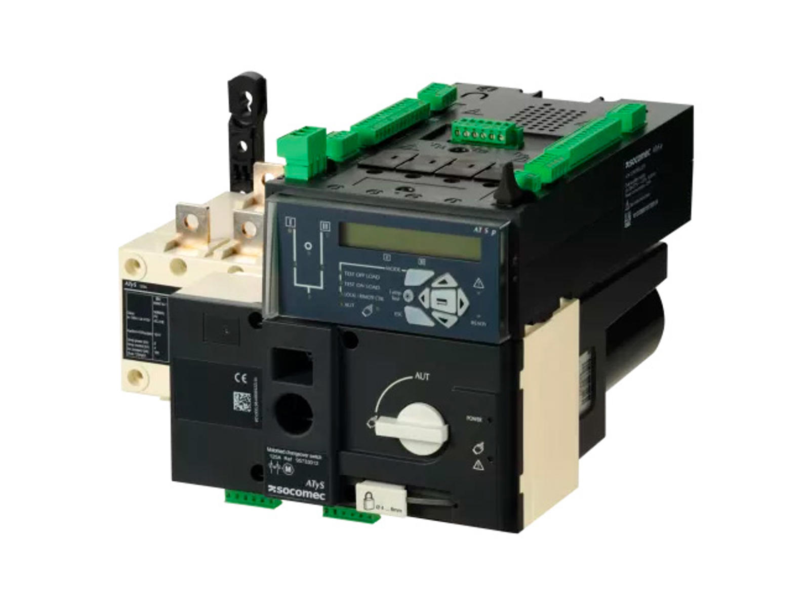 ATyS p er automatiske omskiftere, der tydeligt viser afbrydelsestilstanden. De automatiske omskiftere har ekstra funktioner til strømstyring og funktionskommunikation. I automatisk tilstand sørger enhederne for overvågning og belastningsskift mellem to strømforsyningskilder i henhold til de parametre, der er indstillet via LCD-displayet eller gennem kommunikation.