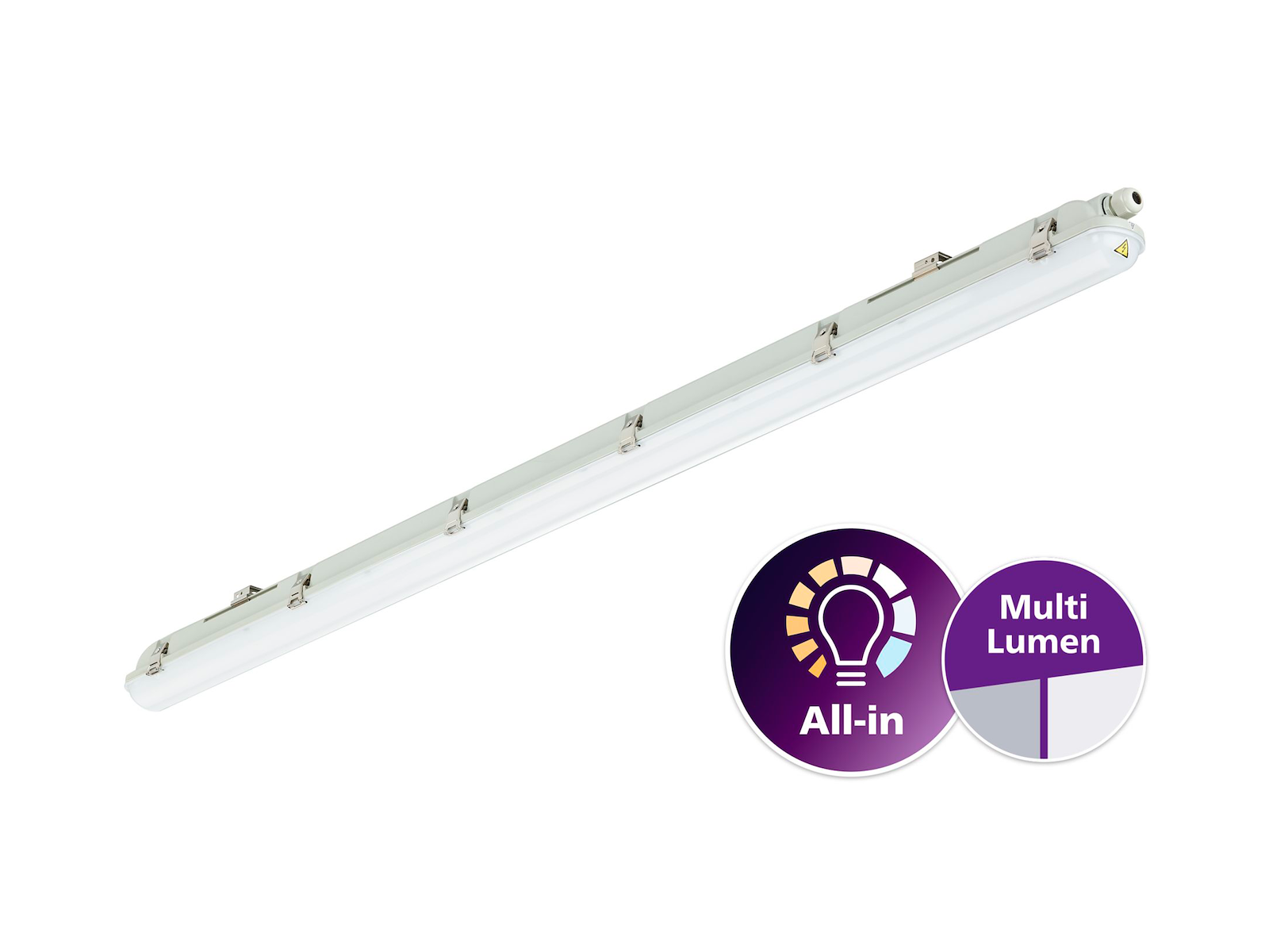 Ledinaire industriarmatur, All-in, L1214, 42/23W, 2900/4800lm, On/Off, 840, 1F gennemfortrådning - IP65
