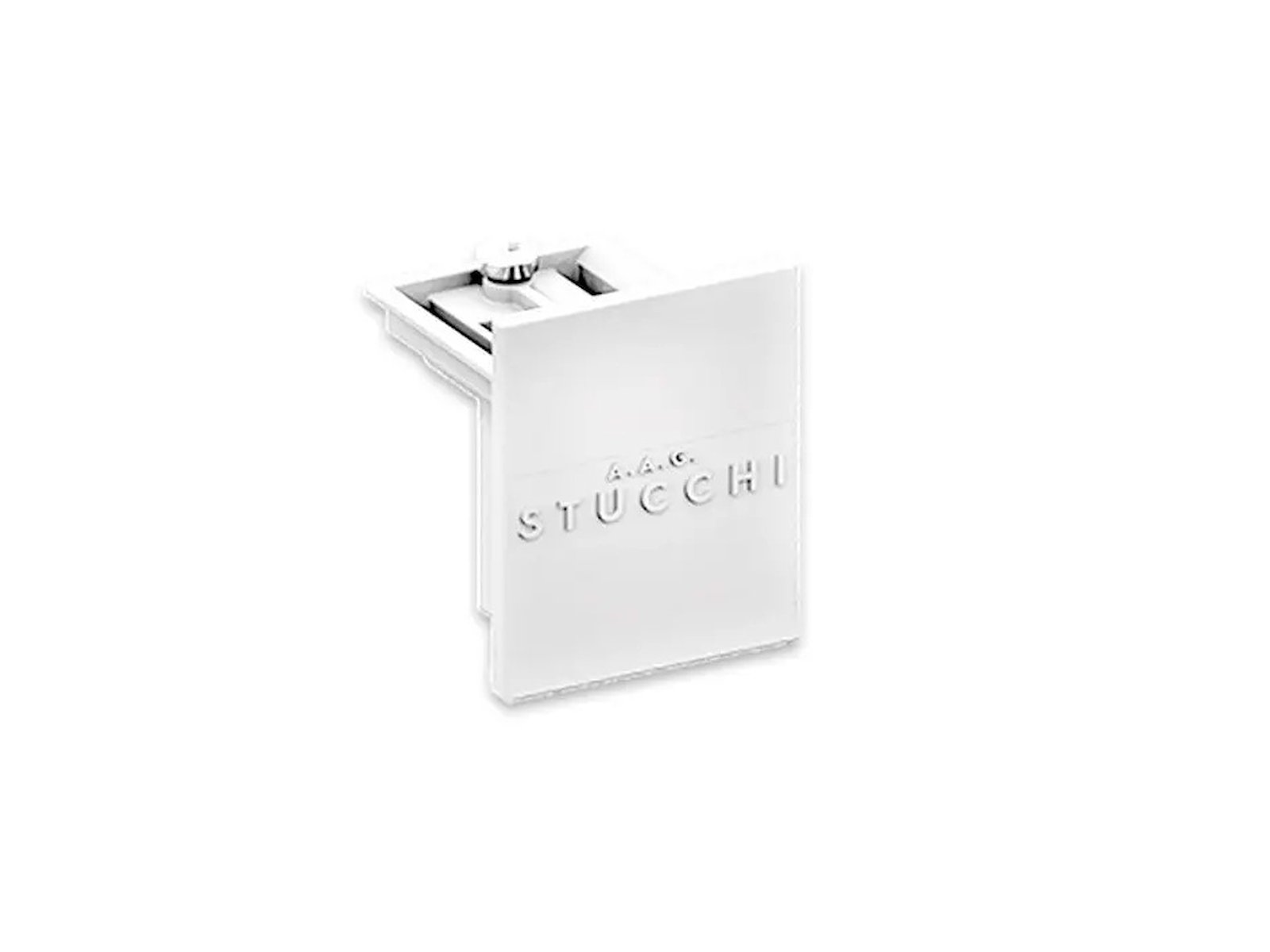Onetrack endestykke i hvid med låseskruer, som kan bruges til OneTrack® DALI skinner.