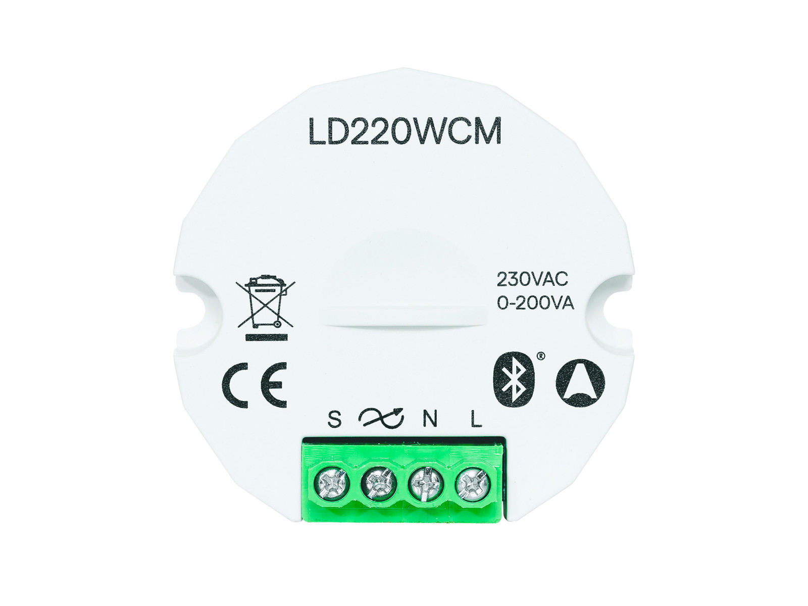 Lysdæmper til 230VAC LED op til 200VA med dæmpning og tænd/sluk funktion. Der kan tilsluttes et fjedertryk, som giver synkroniseret kontrol over flere LD220WCM-dæmpere.