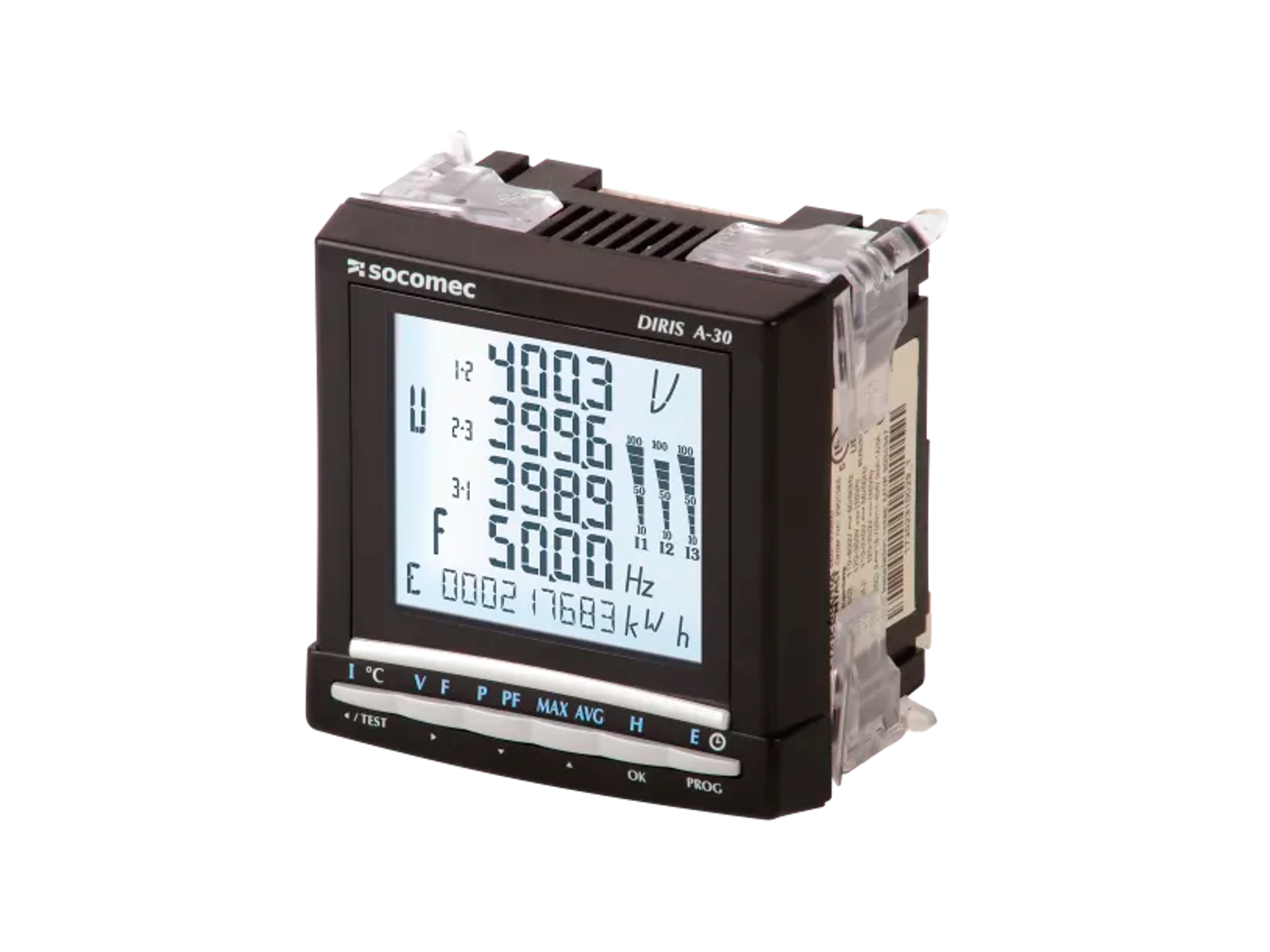 DIRIS A-30 er en strømovervågningsenhed, der giver alle de målinger, der er nødvendige for at gennemføre energieffektivitetsprojekter og sikre overvågning af eldistribution. Al information kan bruges og analyseres eksternt ved hjælp af softwarepakker.