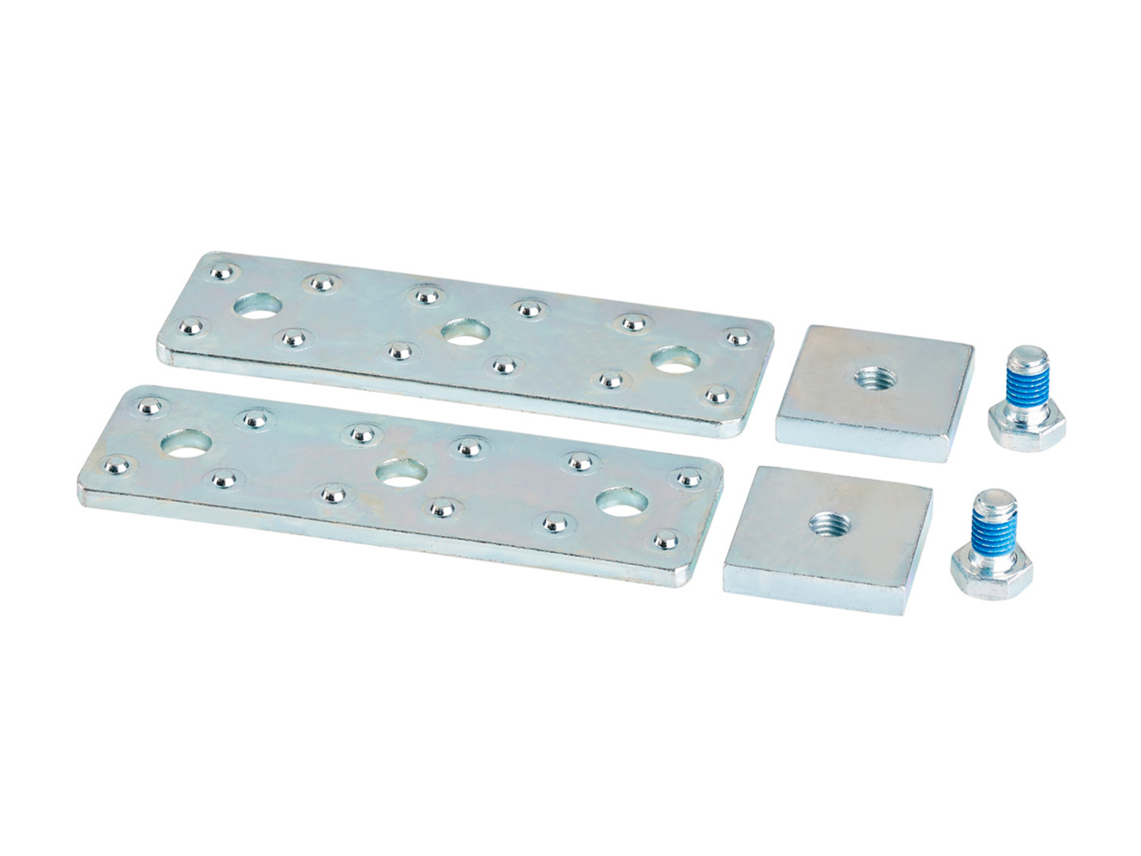 Skinneforbindelse beregnet til tilslutning af 3 skinner på monteringsrammen. Leveres som et sæt med 2 stk. inkl. skruer.