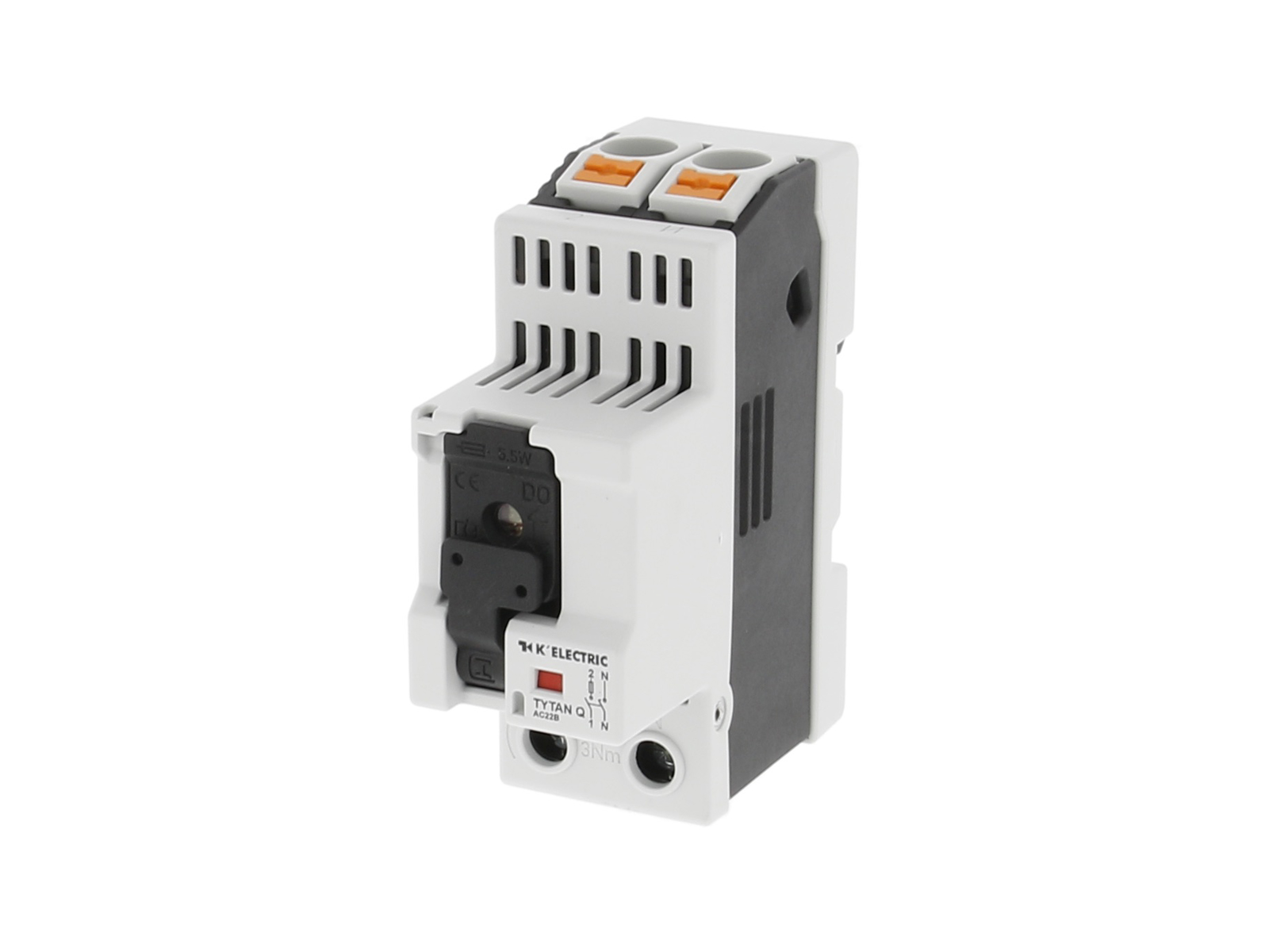 TYTAN® Q gruppeafbryder fra K’ELECTRIC i 1P+N. Gruppeafbryderen kan monteres med D0 sikringer.
