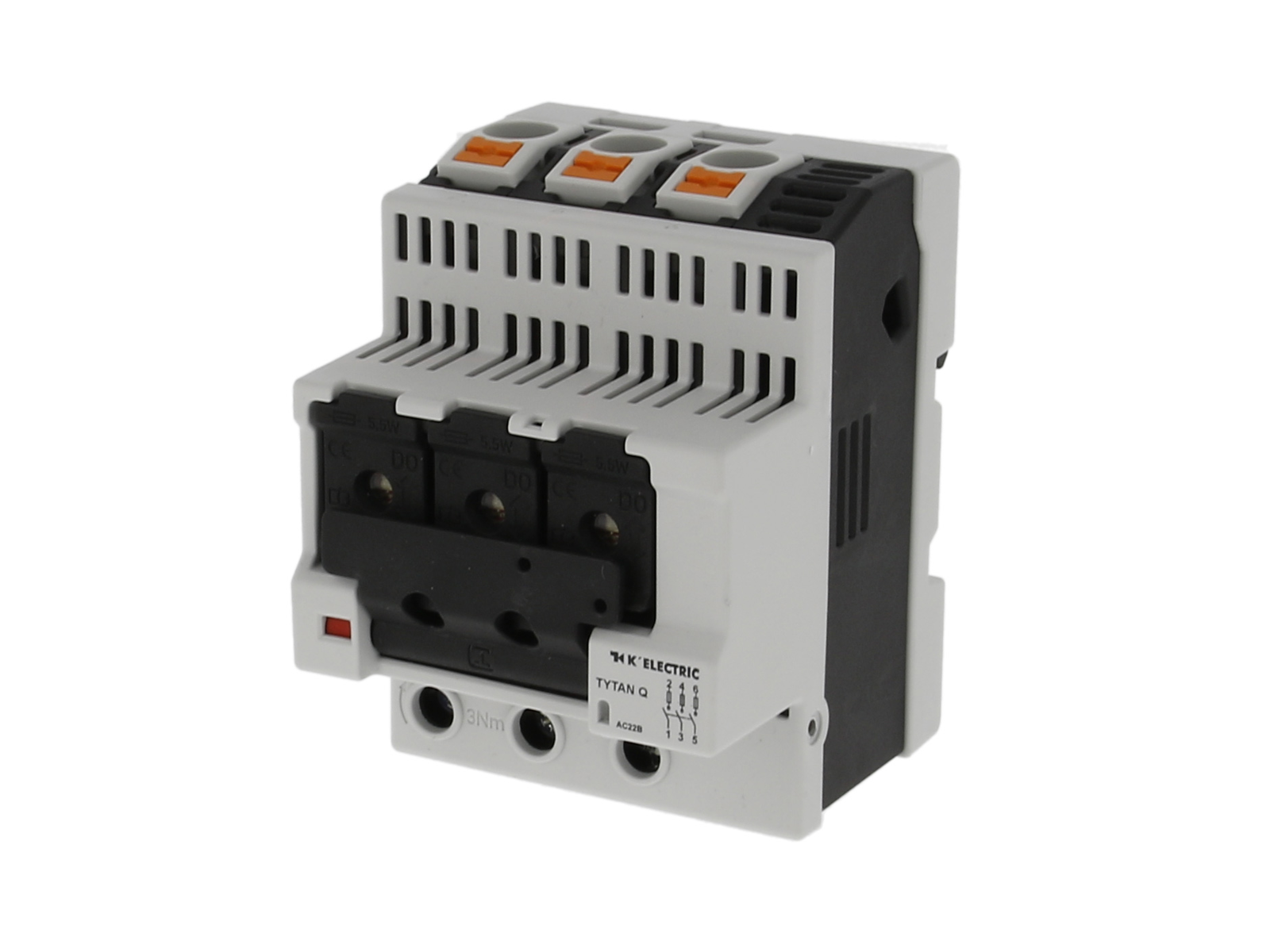 TYTAN® Q gruppeafbryder fra K’ELECTRIC i 3-pol. Gruppeafbryderen kan monteres med D0 sikringer.