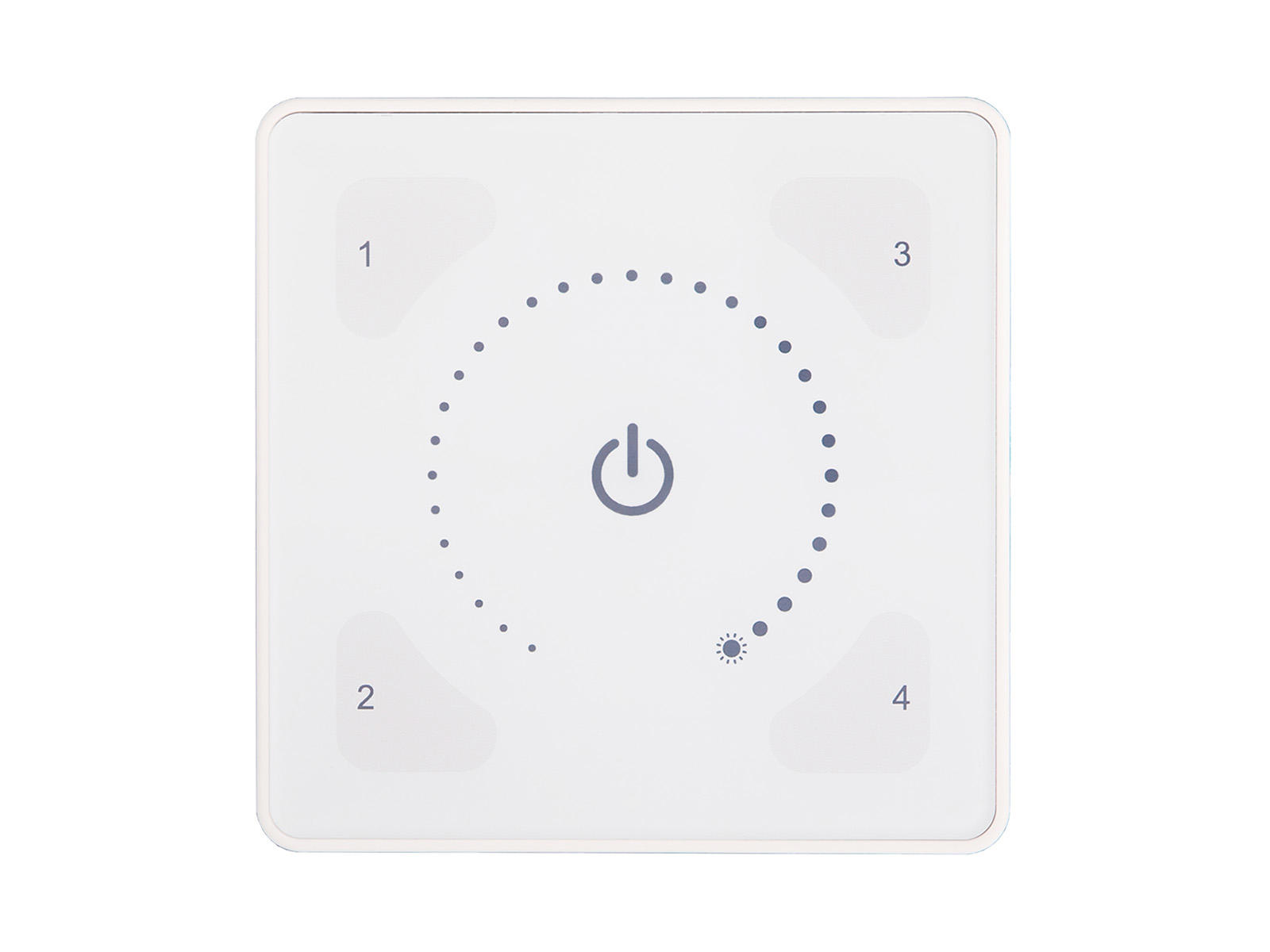 ILLUSTRIS® Scene Control panel i glas med fire scener, sluk/sidste niveau og intensitetskontrol.
