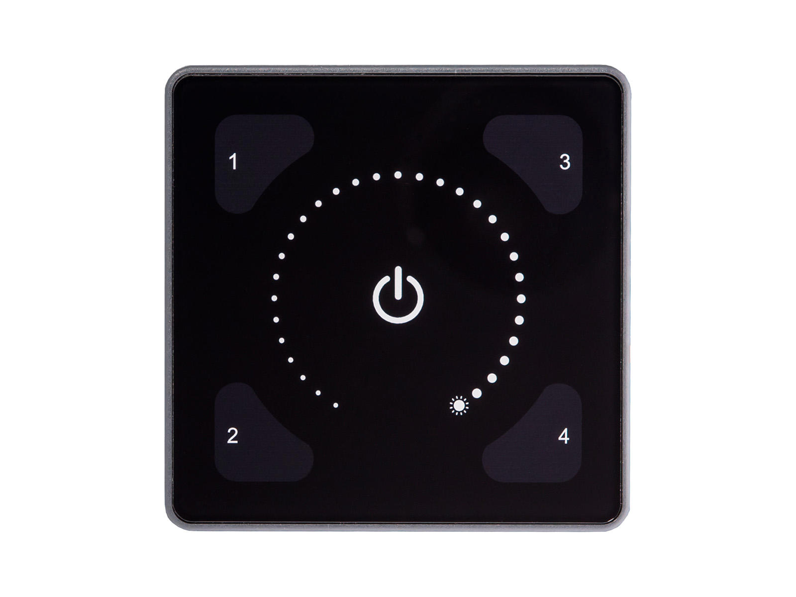ILLUSTRIS® Scene Control panel i glas med fire scener, sluk/sidste niveau og intensitetskontrol.