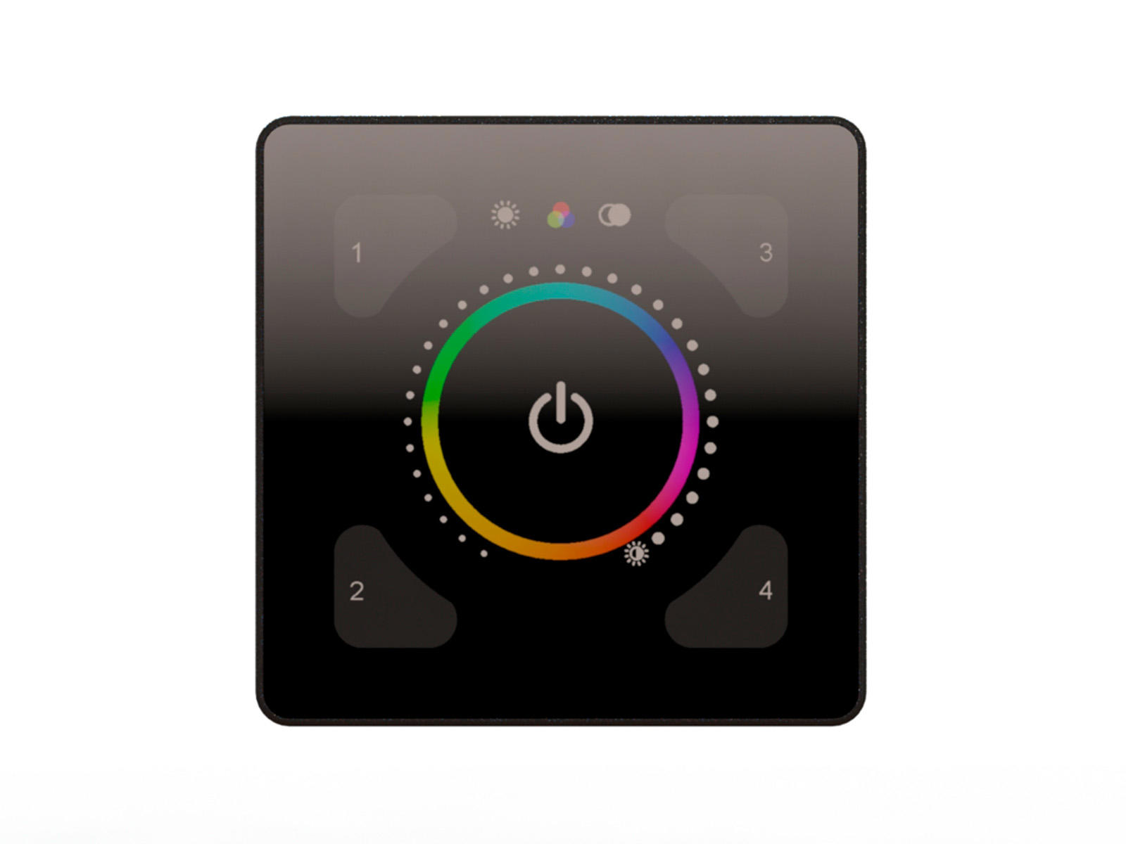 ILLUSTRIS® Full Colour Control panel i plast med fire scener, sluk/sidste niveau og styring af intensitet, farvenuance og farvemætning.