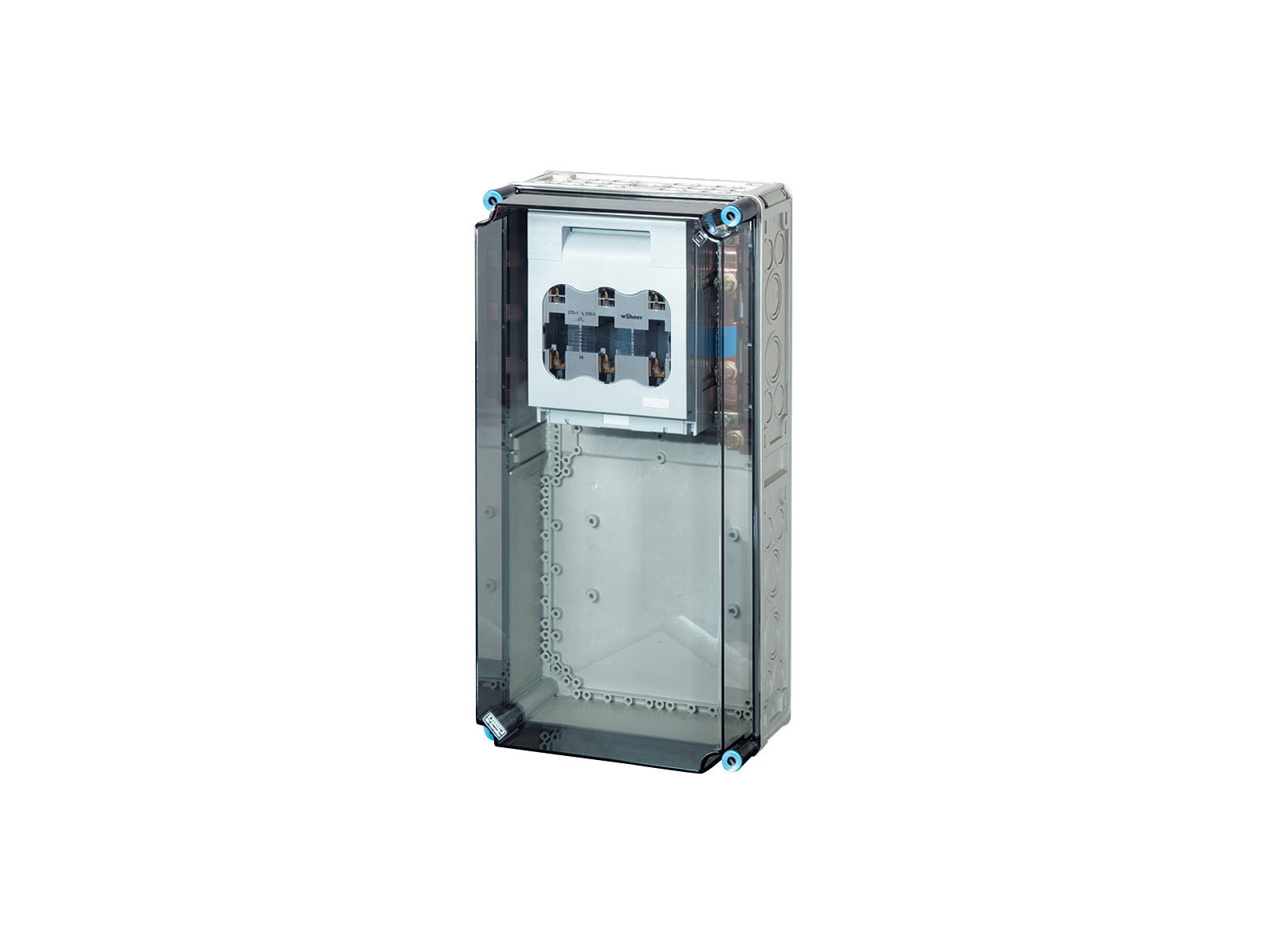 Hensel Mi kasse med 1 stk. sikringsafbryder 250A, HRC 1, 3-polet. Nominel strømstyrke for skinner 400A. Kun til kombination. Mål (HxBxD) 600 x 300 x 170 mm.