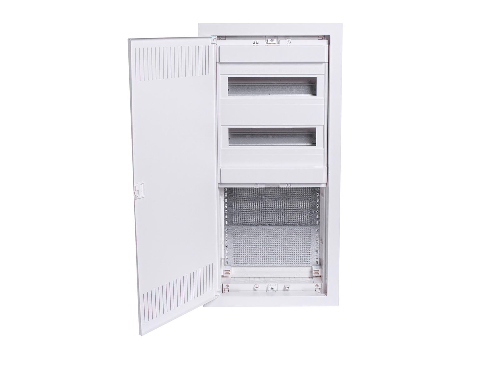 Leveringsomfang: Tavle, metalramme med perforeret dør, montageplade, DIN-rækker, skilleplade (ekskl. stikkontakt) monteringsmateriale og instruktioner