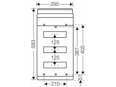 Kasse med DIN-skinne med ekstra plads til elektrisk udstyr, som ikke skal aktiveres manuelt. Kabelindføring via integrerede gummimembraner.
