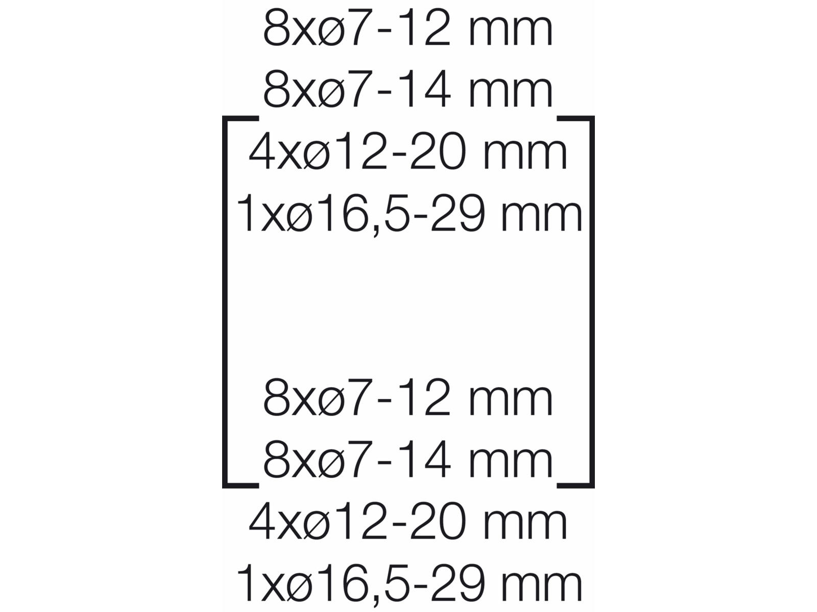 - Pr. PE/N nummer x tværsnit 6 x 25 mm², 24 x 4 mm² Cu, FIXCONNECT® klemmeteknologi, for klemmeteknologi, se de tekniske specifikationer