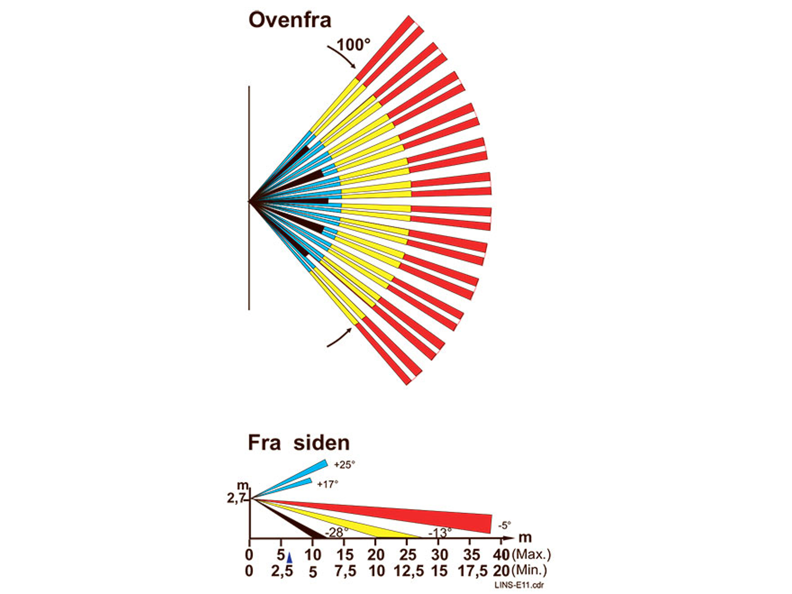 Linse 11 ser i en 100º vinkel 41 meter frem i fire detekteringslag. Den kan afdække et område på max. 41 x 41 meter.