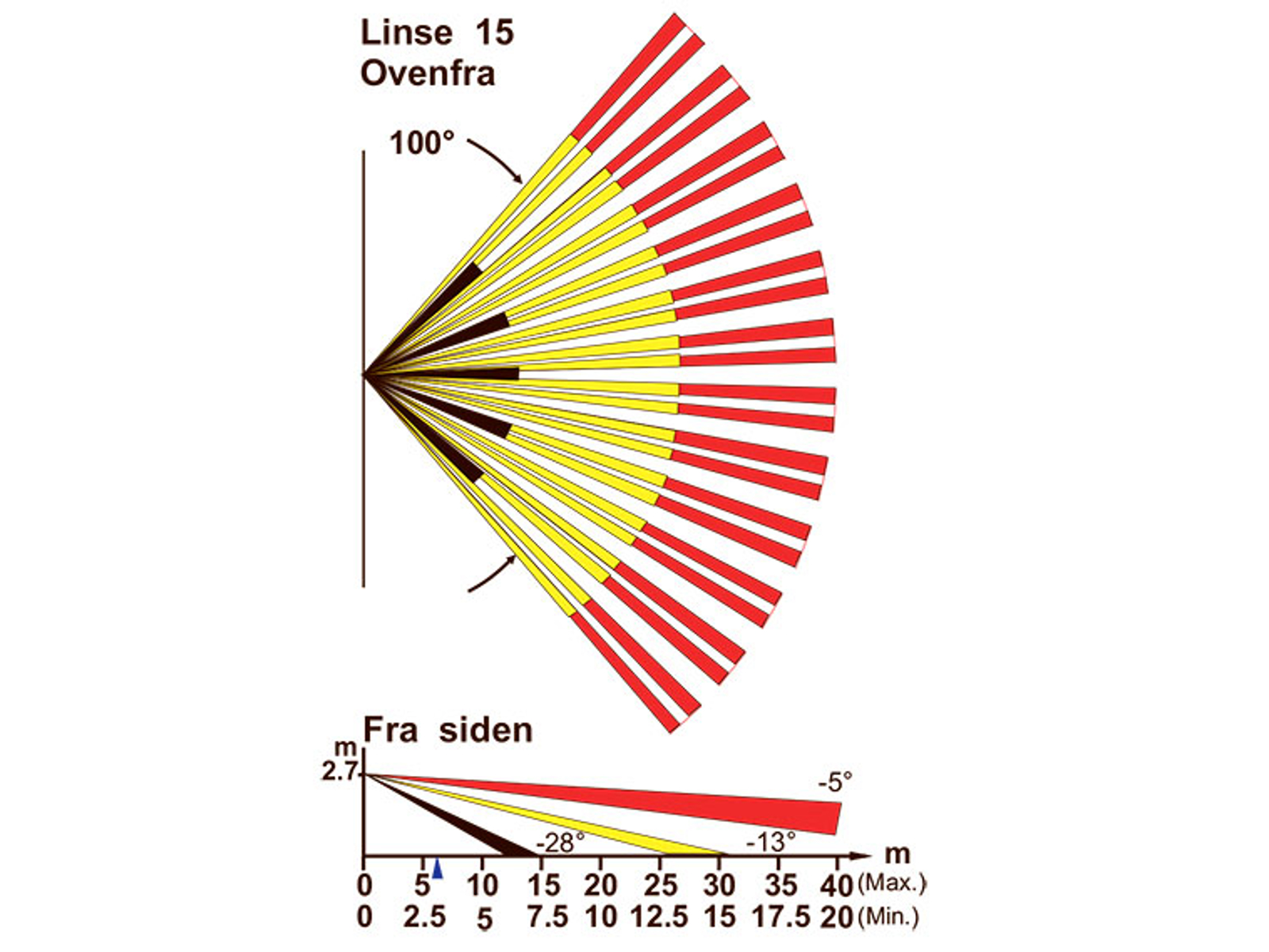 Linse 15 ser i en 100º vinkel 41 meter frem i tre detekteringslag. Den kan afdække et område på max 41 x 41 m.