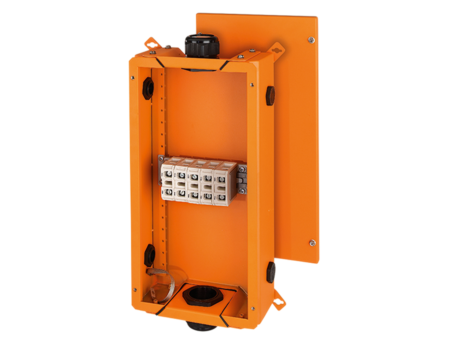 Hensel brandsikker forgreningsdåse med en 5-polet keramisk tilslutningsklemme, der tåler høje temperaturer. Testet for brandmodstand i henhold til DIN 4102 del 12 med funktionskabler fra Dätwyler og Eupen i henhold til kabelproducenternes testcertifikater. Sikrer funktion i op til 90 minutter (E90-klassificering).