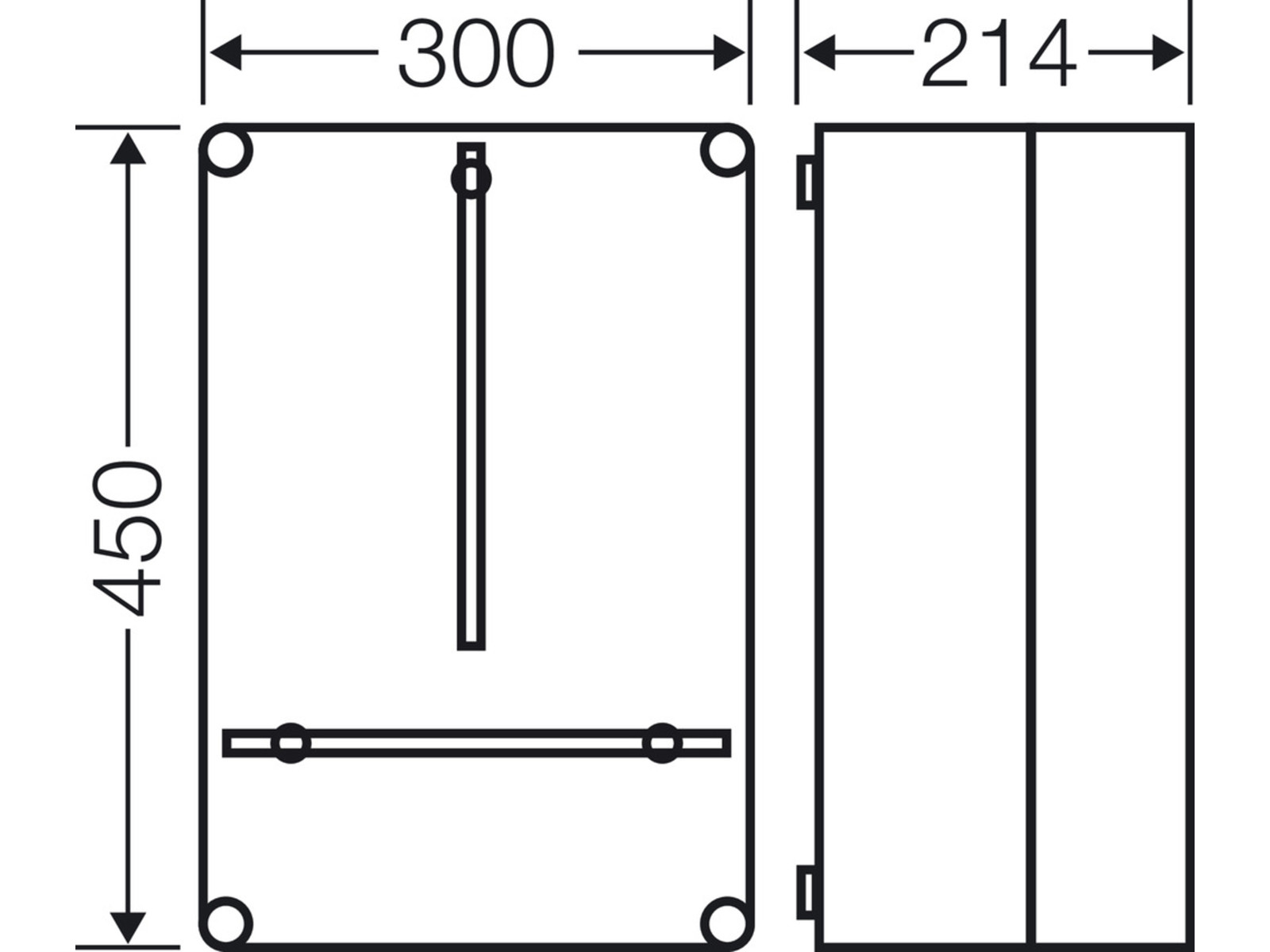 Hensel Mi kasse med beslag til 1 stk. kWh-måler med trepunktsophæng. Mål (HxBxD) 450 x 300 x 214 mm.