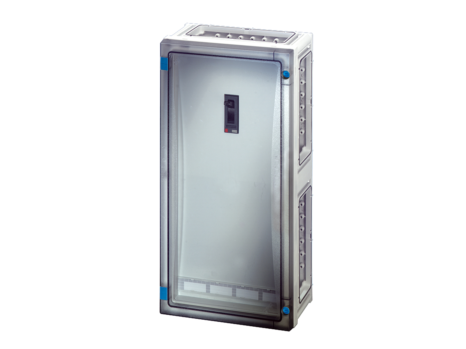 Kasse med transparent dør og uden sider. Til maksimalafbryder med afbryder iht. IEC60947-2. Må kun betjenes af fagkyndige personer.