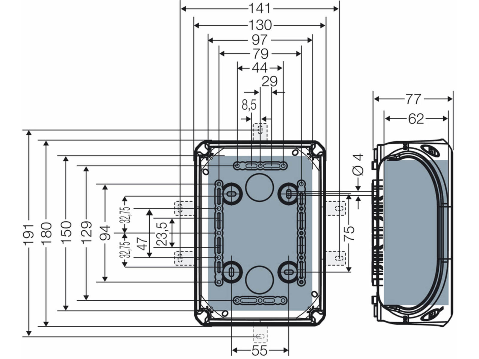 Forgreningsdåse 5x1,5-6 mm², Cu, 130x180x77 mm, IP66 - Grå