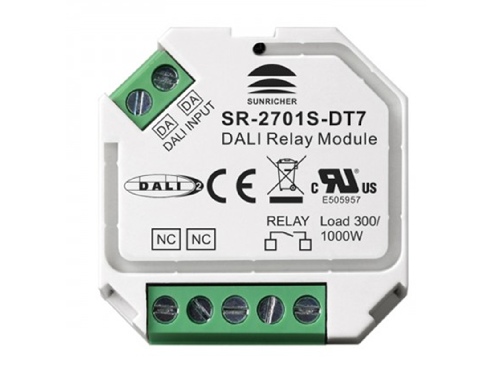 Kompakt relæmodul for styring af standardkontakter via DALI