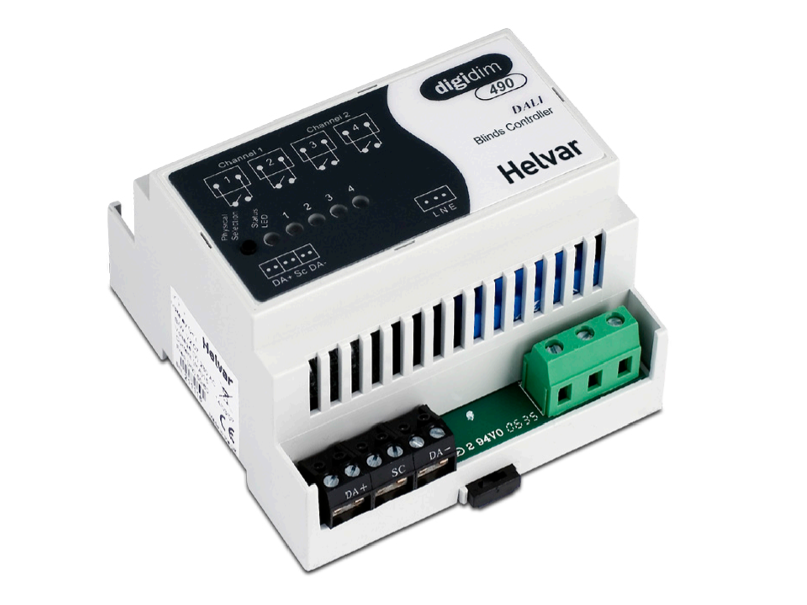 Digidim 490 fra Helvar er et 2-kanals markisestyringsmodul, som gør det muligt at styre persienner og gardiner i et Helvar lysstyringssystem. Hver kanal kan koble op til 550W.