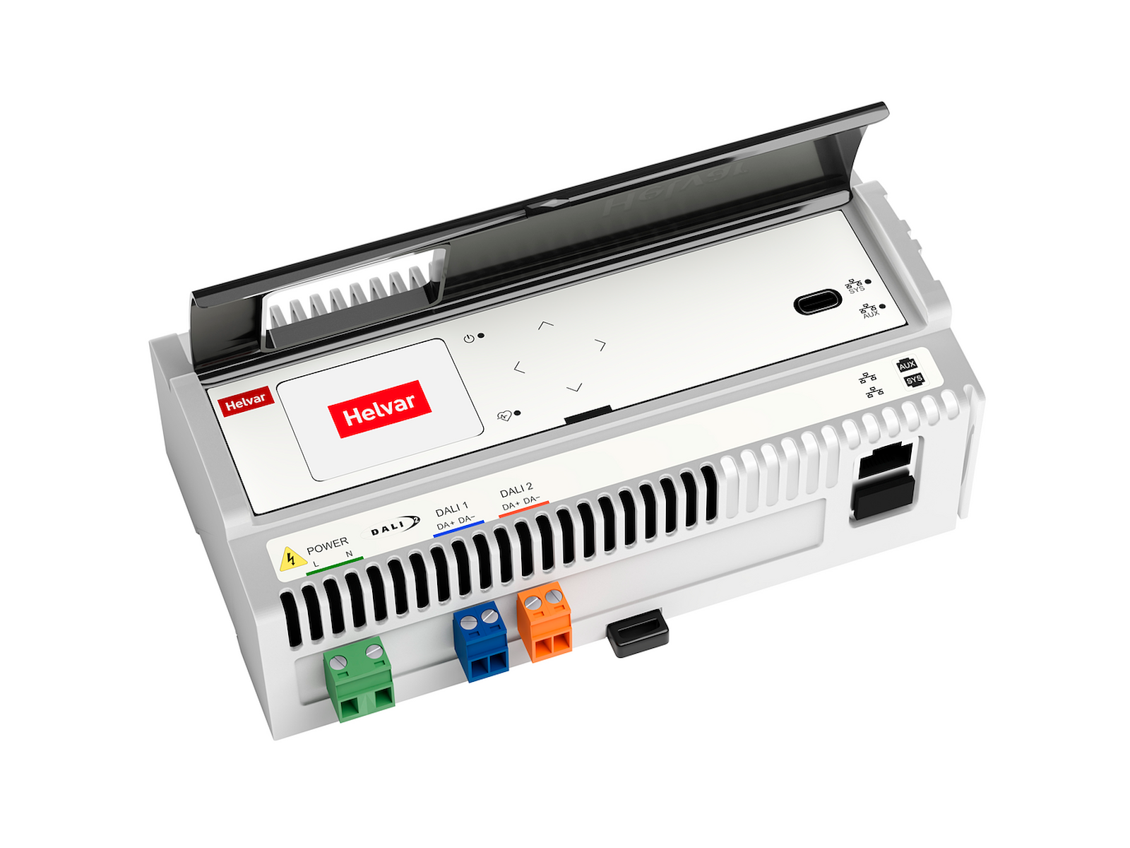 Imagine 945 routeren fra Helvar er en certificeret DALI-2 multimaster controller, der kan styre DALI-2 belysning og DALI-2 certificerede kontrolenheder, herunder trykknapper, PIR- og dagslyssensorer.