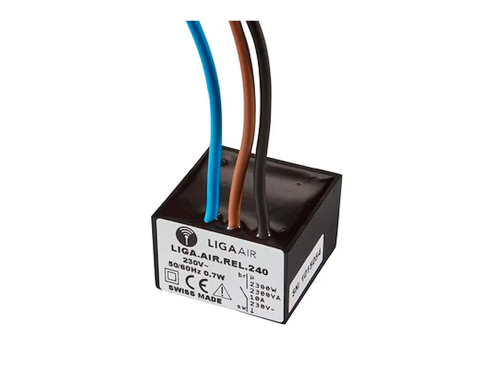 Relæet kan konfigureres og styres via Casambi app’en. Modulet er indkapslet i et sort ABS hus og det kompakte design gør det nemt at montere i dåser, kabelkanaler m.m.