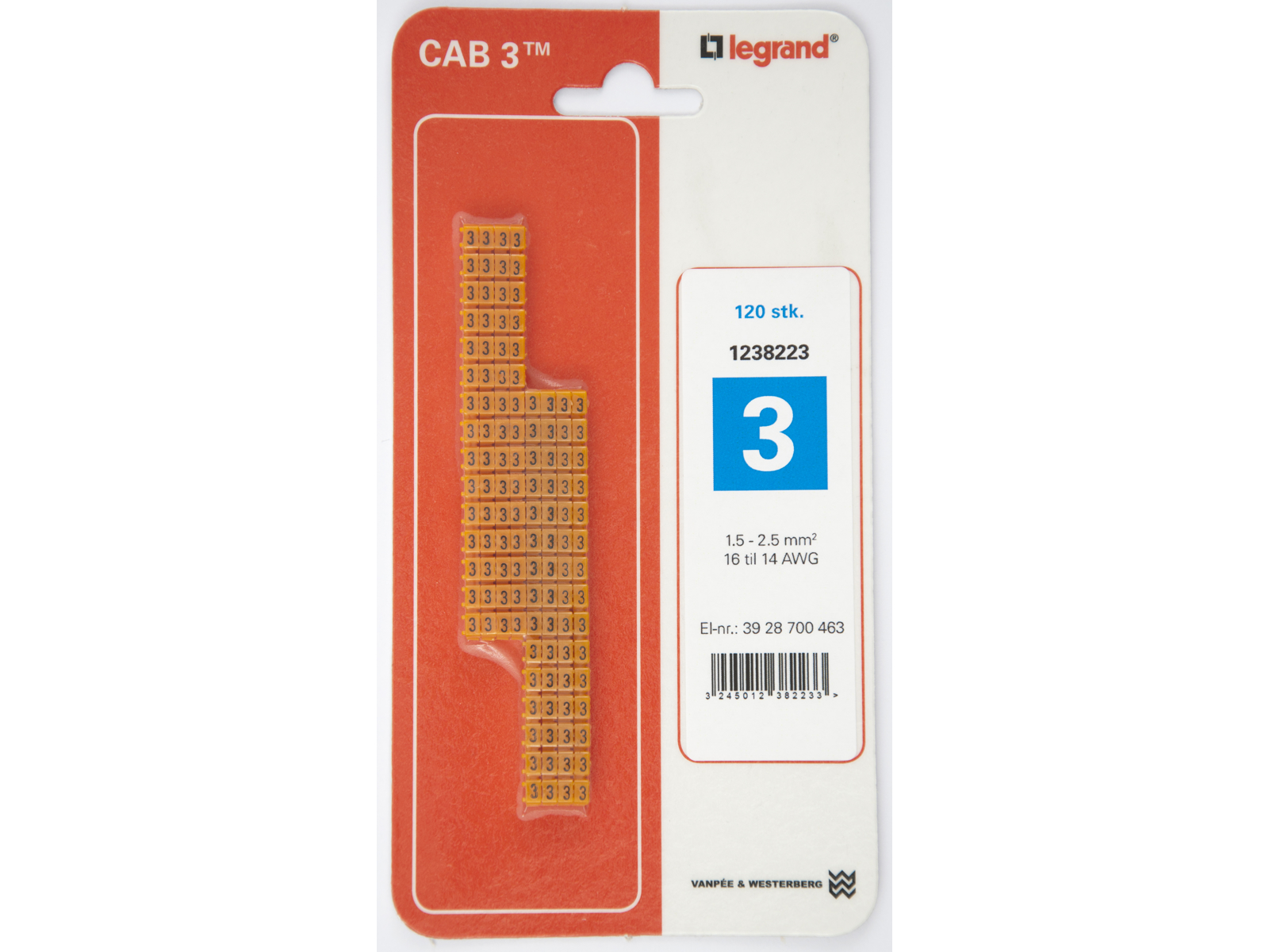 CAB 3 ledningsmærker 1,5-2,5 mm² (3) - 120 stk.