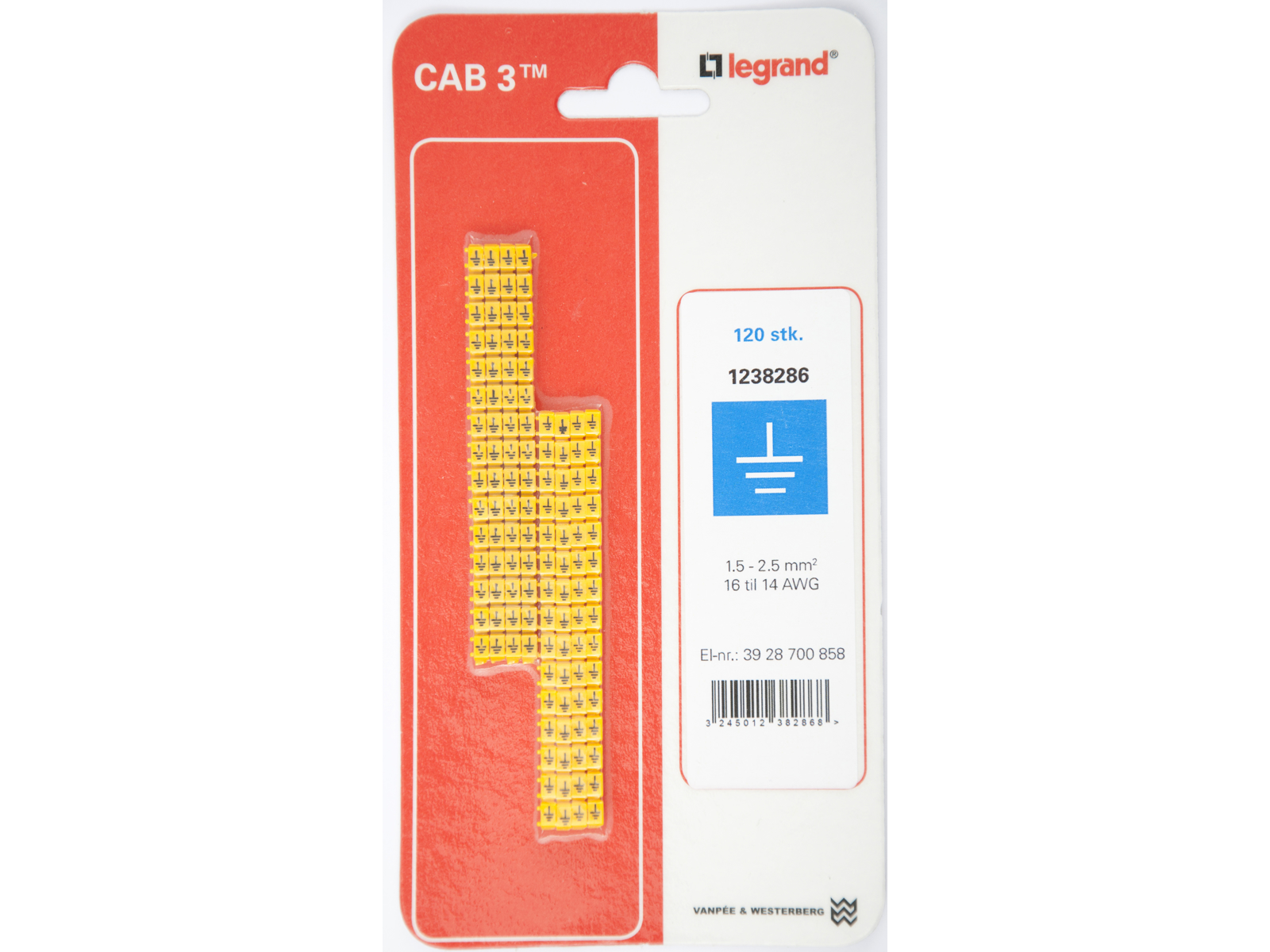 CAB 3 ledningsmærker 1,5-2,5 mm² (jord) - 120 stk.