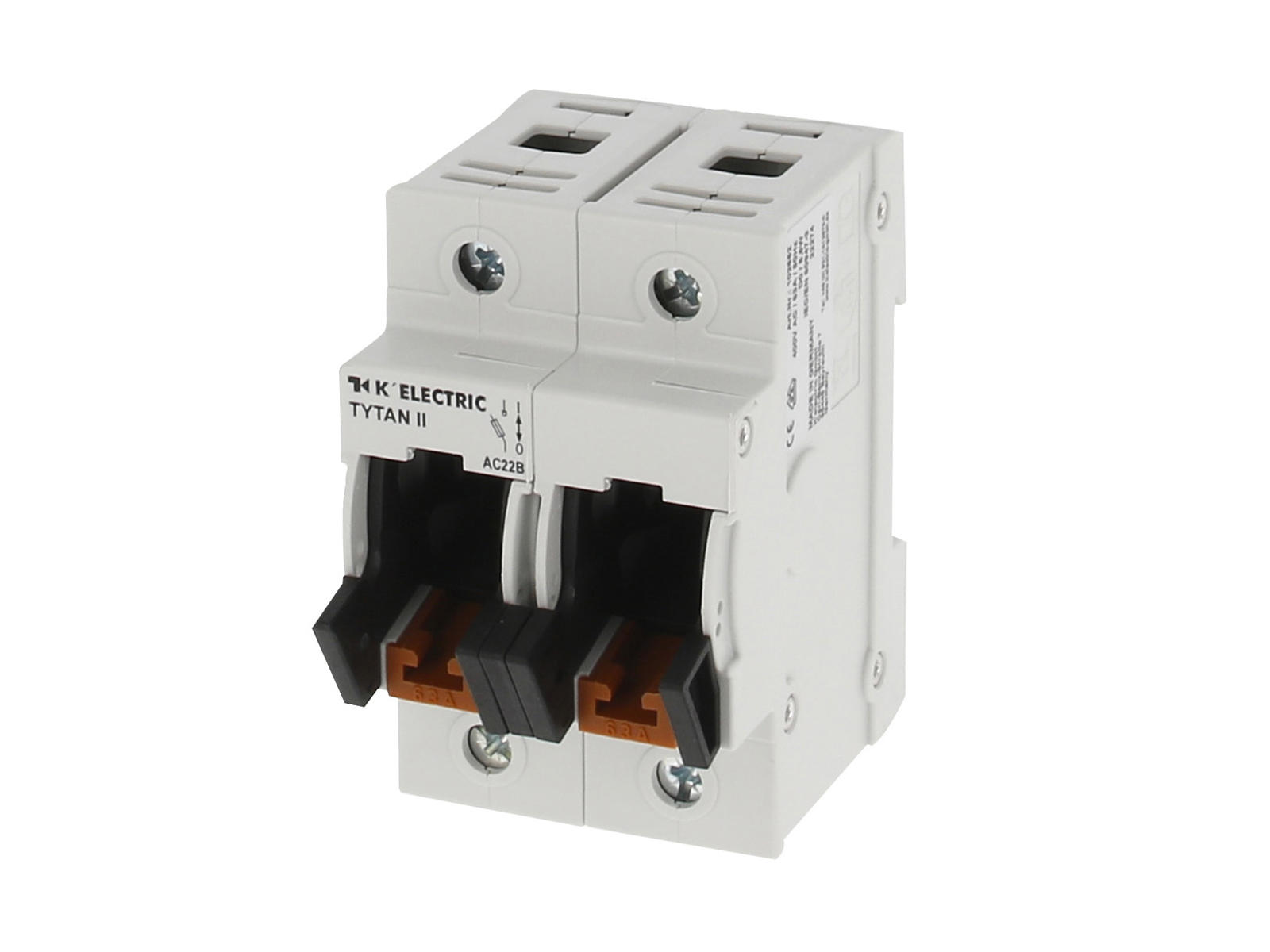 TYTAN® II gruppeafbryder fra K’ELECTRIC i 2-pol. Gruppeafbryderen kan monteres med D0 sikringer fra 1-63A.