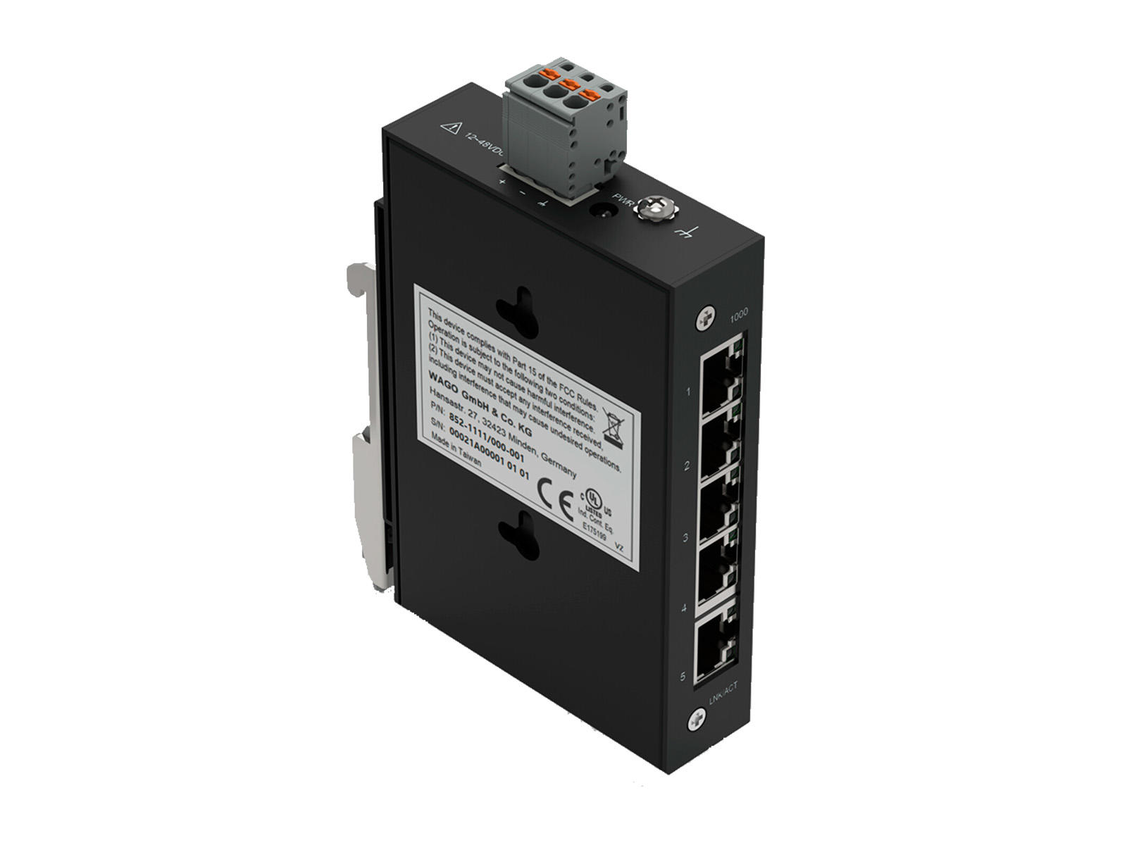 Wago switch til DIN-skinne med 5 porte 100Base-TX