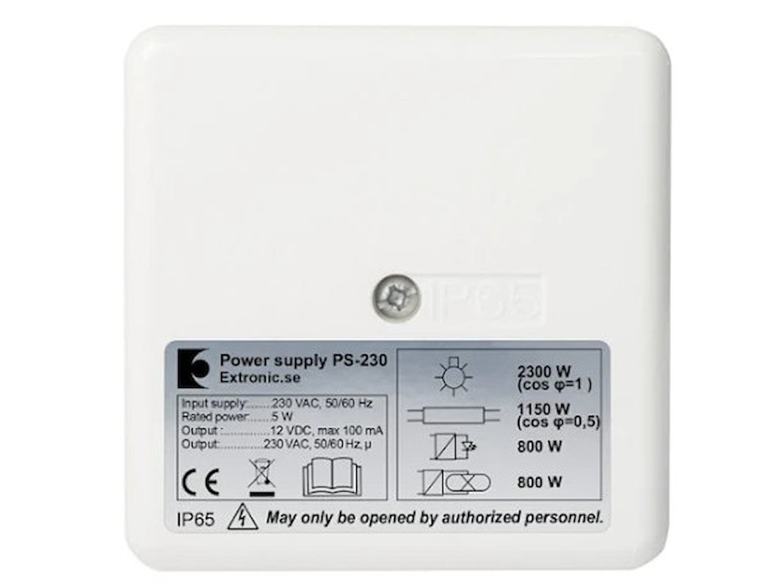 Strømforsyningsmodulet PS230 er beregnet til delt montage og leverer strøm til PIR sensoren PD231.