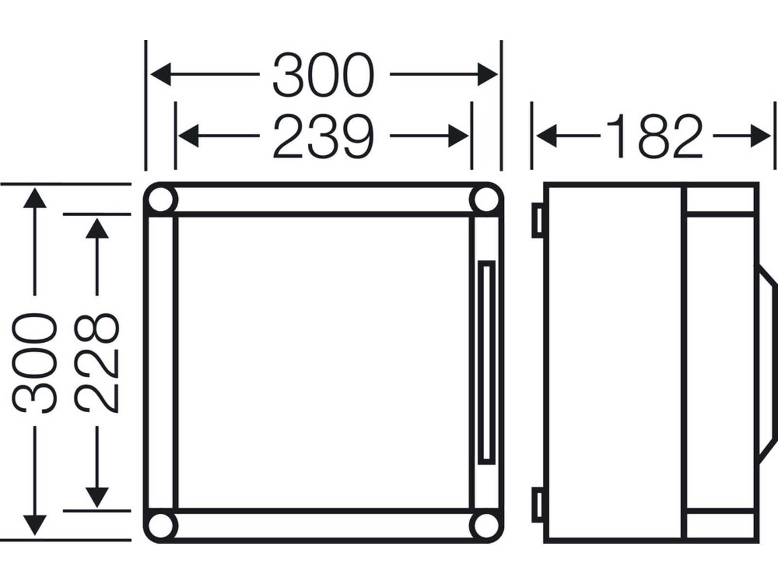 Indbygningsmål (BxHxD): 275 x 275 x 119 mm