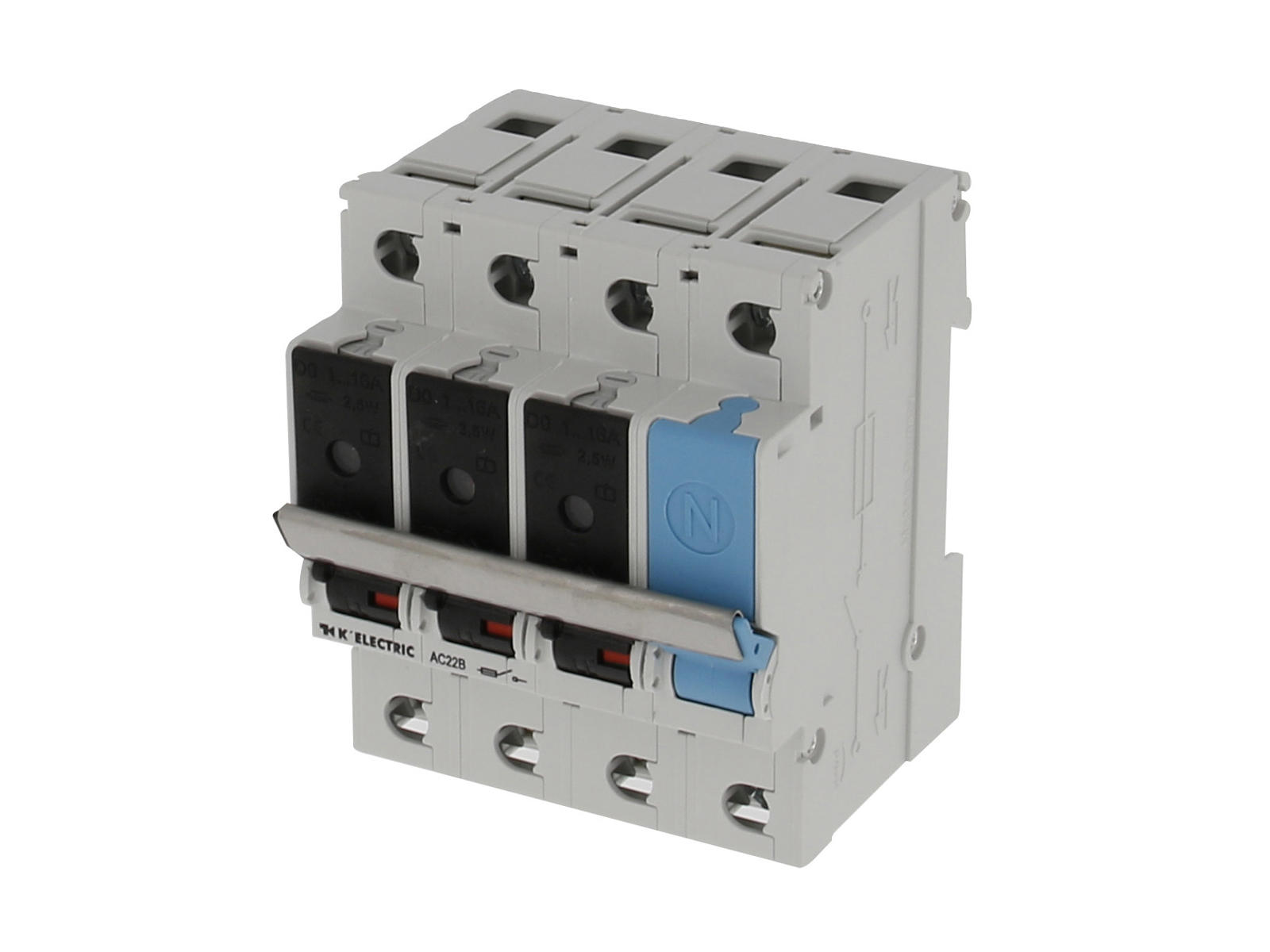 TYTAN® I gruppeafbryder inkl. sikringsskuffer fra K’ELECTRIC i 3P+N. Gruppeafbryderen kan monteres med D01 sikringer fra 2-16A.