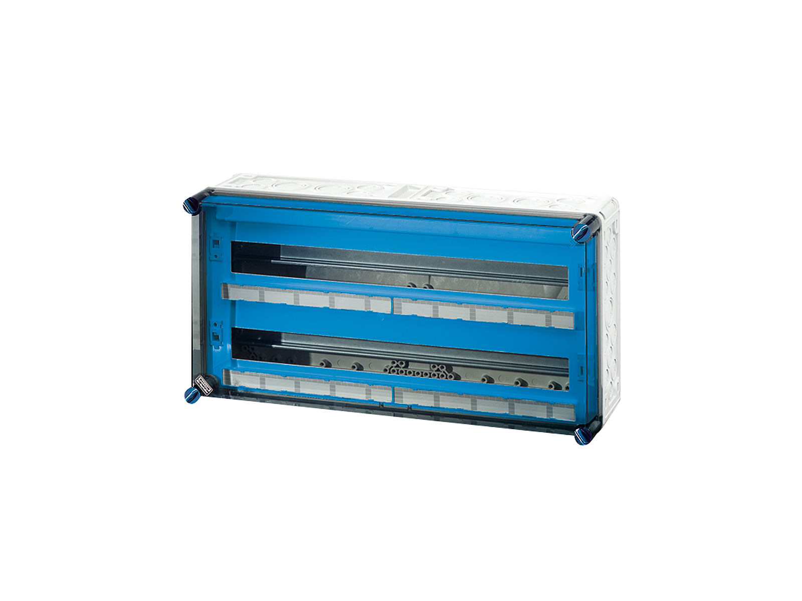 Kasse med DIN-skinne - 56 moduler (2 rækker x 28 moduler per række). Uden PE og N klemme.
